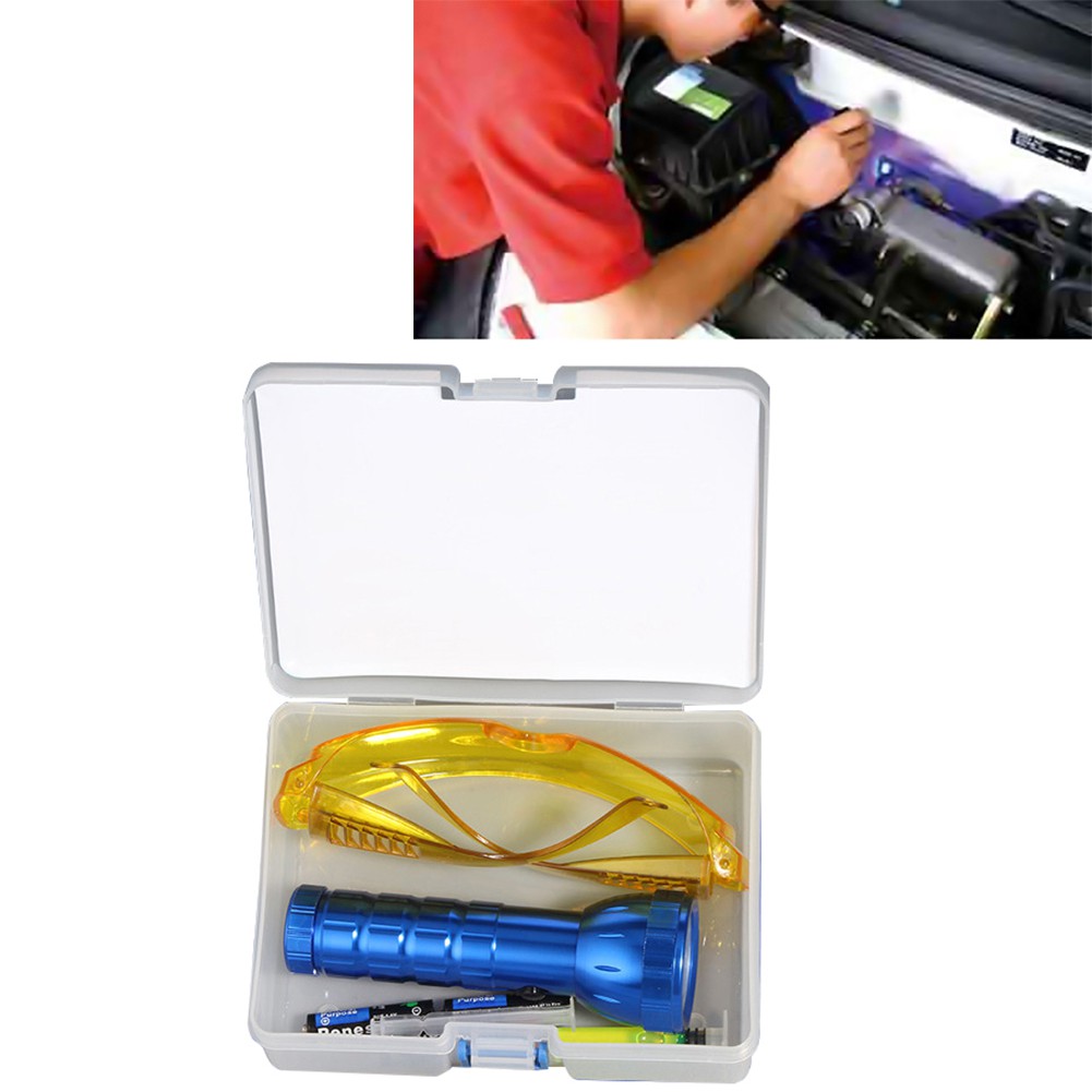 Works with all types of uv leak detection dye. Uv leak detector kit are used to detect metal contaminants that get accidentally mixed up with the products during its production. Automotive specialty tools > auto air conditioning tools > leak detectors > uv leak detection starter k. Includes pen light, protective glasses and aaa batteries. Using uv light, the dye will be seen clearly, making it much easier to identify leaks. 12 volt/50 watt uv leak detector light. Electronic gas detection, hydrogen leak. Fluorescent oil leak detector test uv dye agent auto air conditioning repair kit. A/cleak test detector uv dye. Double piston refrigerant recovery machine. Realhunlee auto air conditioner leak detector tool flashlight oil ac dye leak test detection kit pro 68 led flashlight with uv protective glasses. For use with all types of uv leak detector dye. No extra junction box needed led display provides visual indication for various detector.