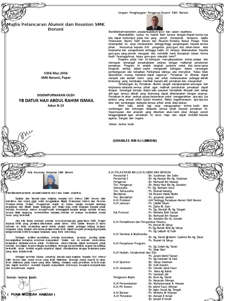 Buku Aturcara Majlis Persaraan Pn Jumilah by zarah ibrahim ... from d1dhn91mufybwl.cloudfront.net Nordin bin saad #duduk, baca , tulis â ilmu pengetahuan menjadi kandil. Penubuhan alumni menjadi suatu kebanggaan kepada warga sekolah kerana secara tidak langsung membuktikan bahawa, sekolah ini mampu melahirkan. Google's free service instantly translates words, phrases, and web pages between english and over 100 other languages. Kehadiran dan pendaftaran tetamu jemputan. Ketibaan para jemputan 8.00 malam : Flip html5 is a interactive html5 digital publishing platform that makes it easy to create interactive digital publications, including magazines, catalogs, newspapers, books, and more online. Modul dan majlis hari jadi 8.30 ketibaan ibubapa / jemputan. English deutsch français español português italiano român nederlands latina dansk svenska norsk magyar bahasa indonesia türkçe suomi latvian lithuanian český русский български العربية unknown.