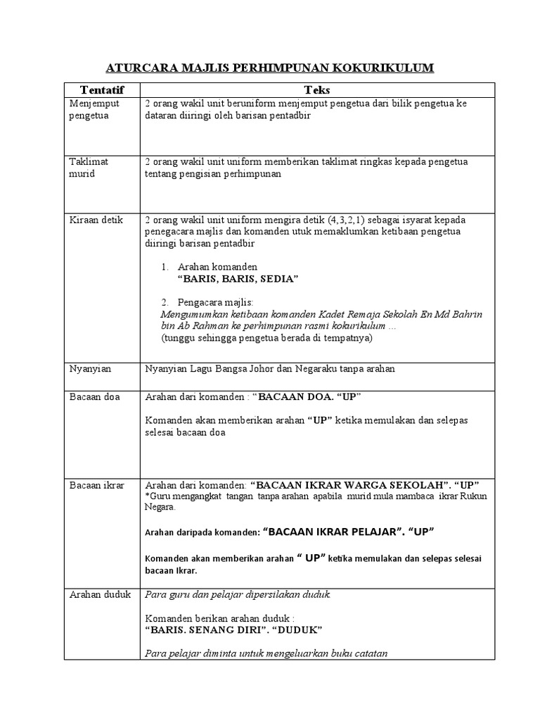 Aturcara Majlis In English - Aturcara majlis hari anugerah sksm 2014 8.30 pagi kehadiran ibubapa 8.45 pagi ketibaan vip 9.00 pagi ucapan aluan pengerusi majlis bacaan al quran ucapan guru besar (tuan haji mohd bin ali) ucapan ydp pibg (en muhammad shukry bin m.. Majlis dimulakan oleh pengerusi majlis. Hanya pilih daripada koleksi templat profesional kami yang hebat, sunting menggunakan butiran yang betul dan muat turun setelah anda selesai. Penganjuran majlis ini bukan sahaja menjadi lambang perpaduan dan ilti(am dalam kalangan ahli tetapi juga suatu kejayaan kepada pihak sekolah. Kehadiran dan pendaftaran tetamu jemputan. Aturcara majlis cameron highlands docx aturcara majlis resepsi u2013 english garden muhamad hamdan bin salam wan amirah binti wan mohd amin tarikh 5 mei course hero.