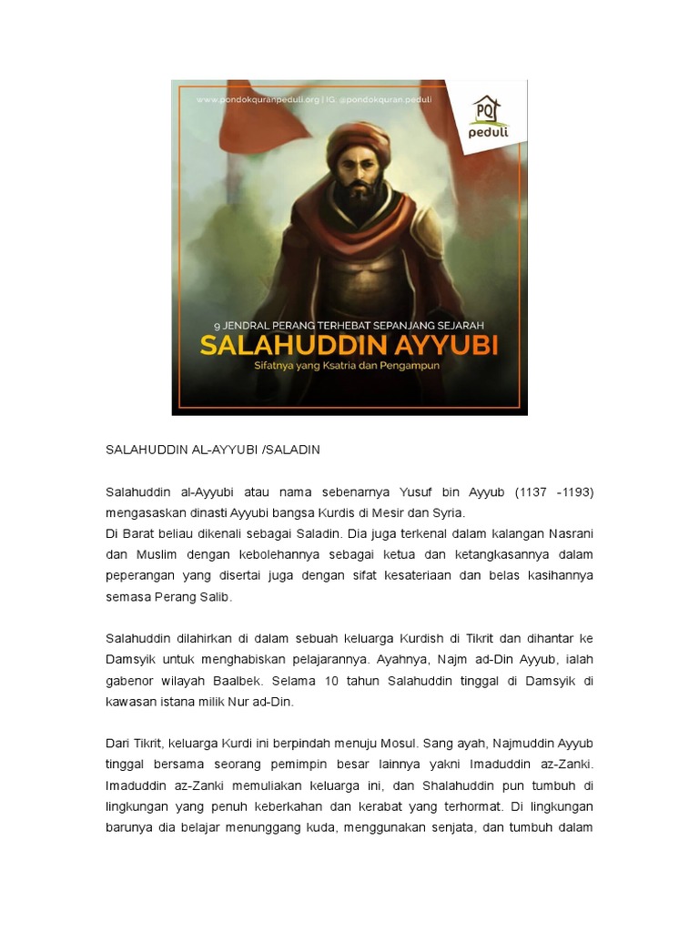 We use your linkedin profile and activity data to personalize ads and to show you more relevant ads. You can change your ad preferences anytime. History tells us that when sultan salahuddin regained jerusalem from the invading and ruthless crusaders, who had ninety years earlier massacred and savagely treated its muslim and jewish inhabitants, he met a group of latin christian women who addressed him, o sultan! يوسف بن نجم الدين) (c. Berani dan bertawakal kepada allah dalam menegakkan syariat islam & hapuskan kemungkaran.